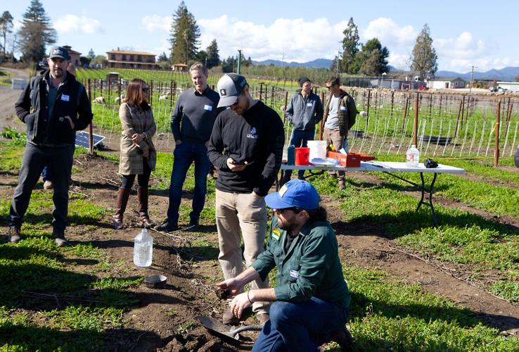 Napa Green’s vineyard program director Ben Mackie walked them through a series of tests and best practices for collecting soil samples and other valuable data, to be used by each participating vineyard on their journeys toward regenerative practices.